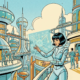 Futuristic bridge connecting product data to an AI lab for a personalized buyer journey.